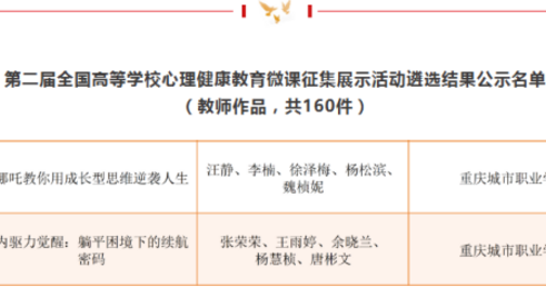 喜报|我校教师作品入选“第二届全国高校心理健康教育微课优秀作品展示”