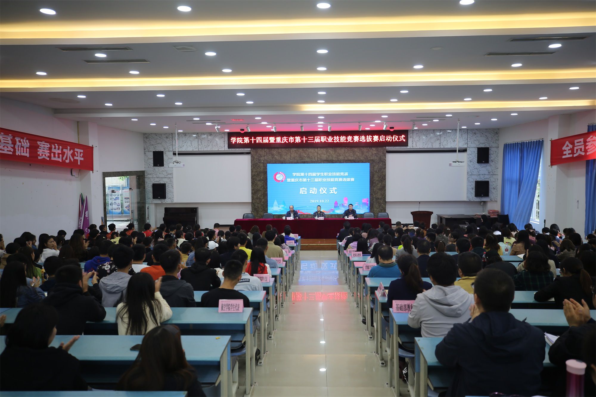 10月22日下午,我校第十四届暨重庆市第十三届职业技能竞赛选拔赛启动仪式在学术报告厅隆重举行。学院党委书记刘波,副院长文斌、刘仲全,行政部门负责人、教学院系(部)全体人员、参赛学生及学生代表等300余人参加此次启动仪式,仪式由文斌同志主持。