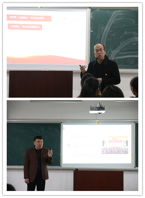 11月6日上午,党委委员、副院长文斌以“构建‘三全育人’新格局”为题,为组织人事处(统战部)、学工部(保卫部)、建筑工程系、公共课教学支部全体党员和入党积极分子讲主题教育专题党课。他结合习近平总书记在全国高校思想政治工作会议上的重要讲话精神,从坚持把立德树人作为中心环节、我校“三全育人”工作的不足、“三全育人”工作措施和不忘育人初心,践行育才使命四个方面,讲解了着力构建“三全育人”工作体系的任务目标和具体举措。
