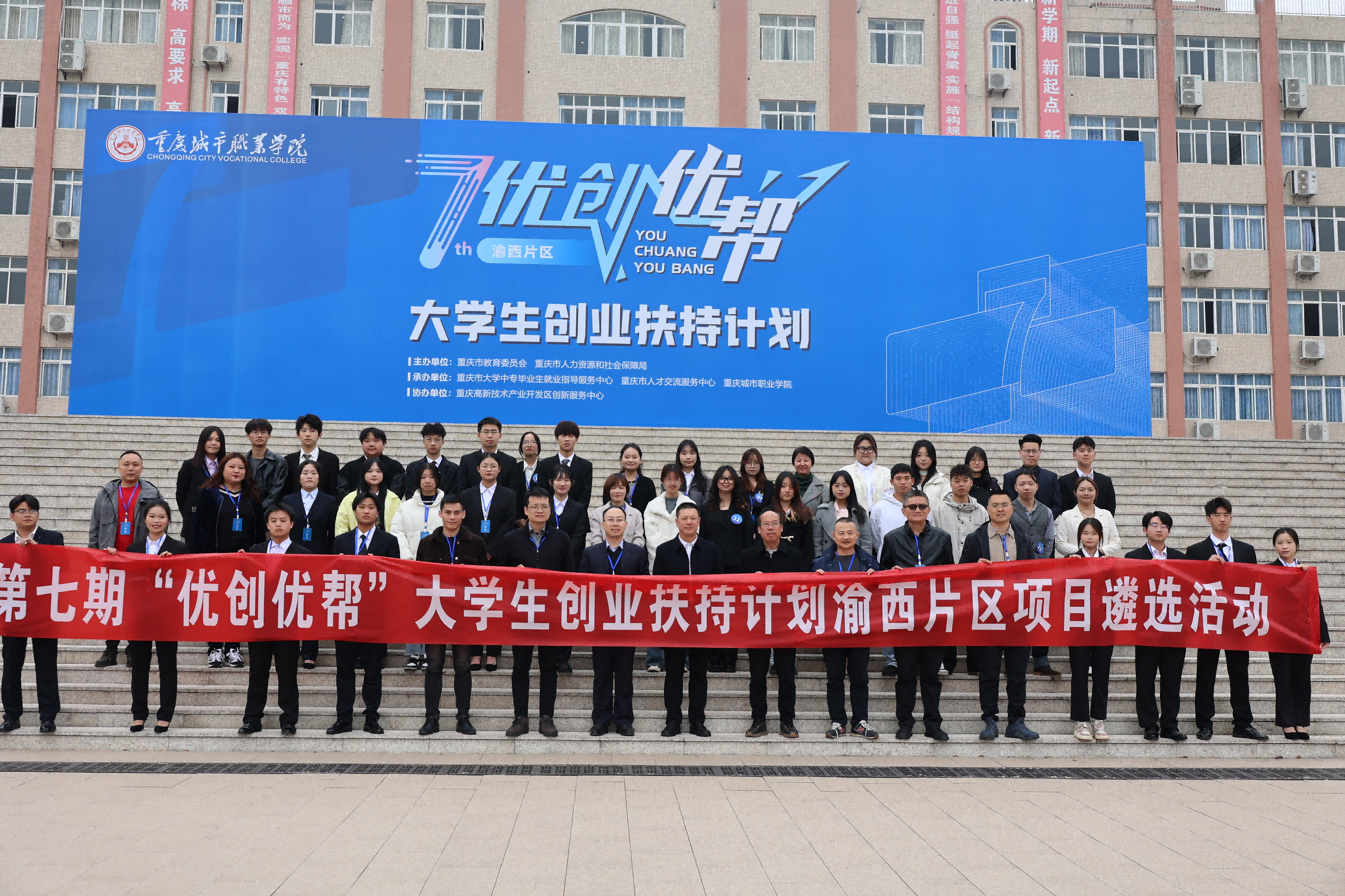 11月21日上午,重庆市第七期“优创优帮”大学生创业扶持计划渝西片区遴选赛在我校成功举办,来自渝西片区7所高校共21个创新创业项目参加比赛。重庆市大学中专毕业生就业指导服务中心副主任徐珮杰带领来自企业和高校评审专家吴安奉、陈典锋、赵华东、陈麟、林霄担任评委,学校校长唐玉林,副校长文斌出席活动。